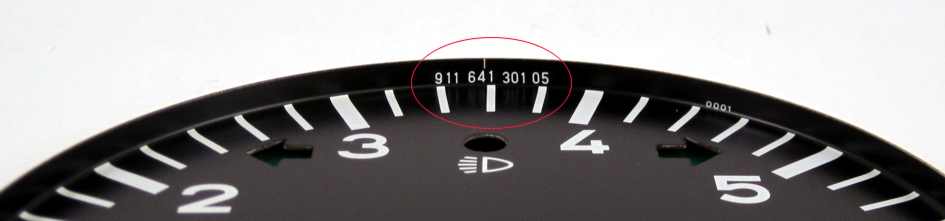 Die Artikelnummer Ihres Drehzahlmessers finden Sie auf dem aufgestellten Rand der Skalenscheibe in 12 Uhr-Position, siehe Bild: