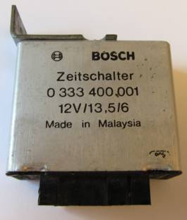 Das Bosch Drehzahlrelais ( 0 333 400 00X und 0 336 611 00X), oftmals auch als Bosch Zeitrelais oder Bosch Zeitschalter bezeichnet, dient in Fahrzeugen mit mechanischer Saugrohreinspritzung dazu, die Benzinzufuhr zu unterbrechen, wenn sich das Fahrzeug im Schubbetrieb befindet. Auch einige Fahrzeuge mit Vergaser verfügen über diese Funktionalität.