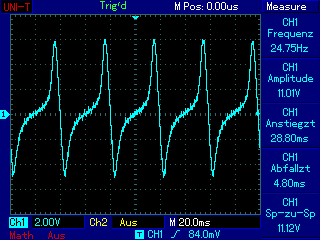 Oszillogramm eines Induktivgebers bei ca. 500 UPM: